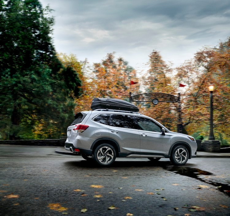 For 2022, all Forester models add an LED dome light with off-delay operation, and additional cargo area hooks, enhancing the model's renowned versatility. An option package upgrades the base model with 17-inch aluminum alloy wheels in silver finish plus roof rails, now with convenient tie-down points.