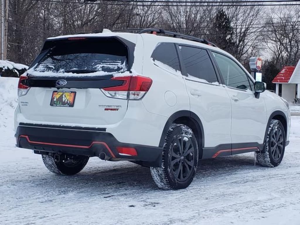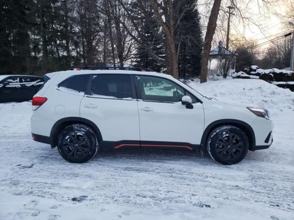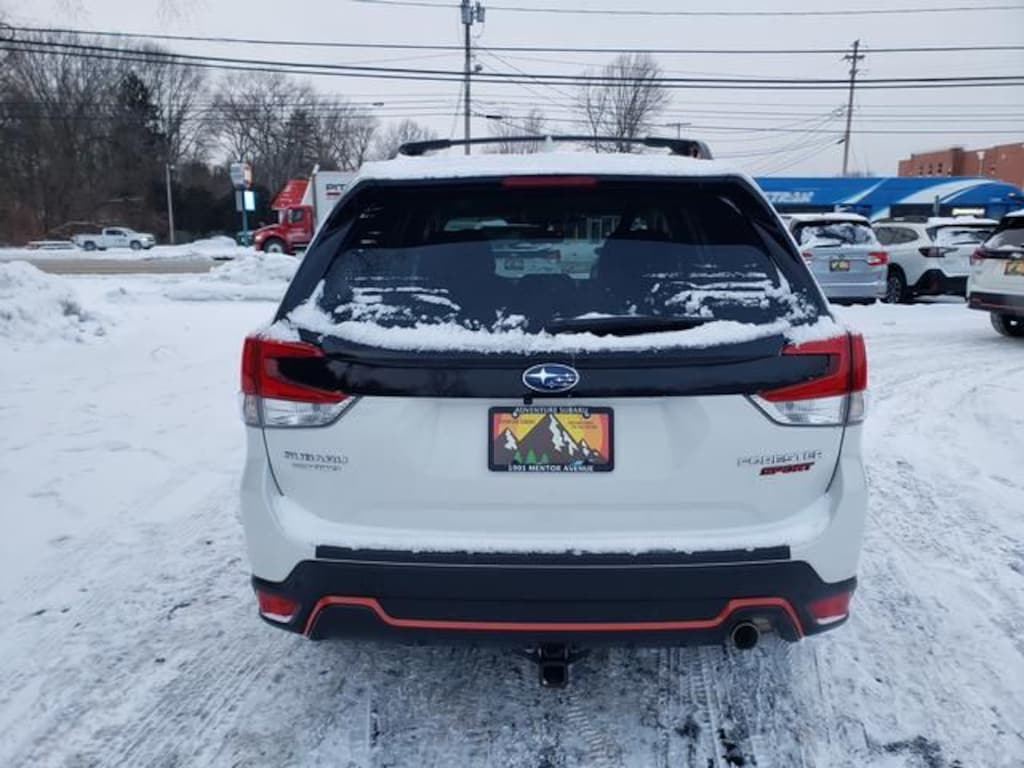 Finished in Crystal White Pearl, this Forester is equipped with 18-inch black finish aluminum-alloy wheels, roof rails, power rear gate, LED lighting, and sporty exterior accents that enhance both style and function.