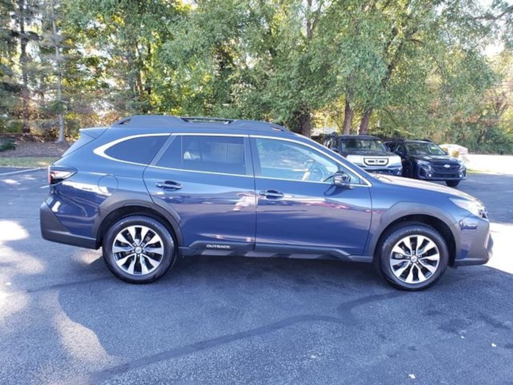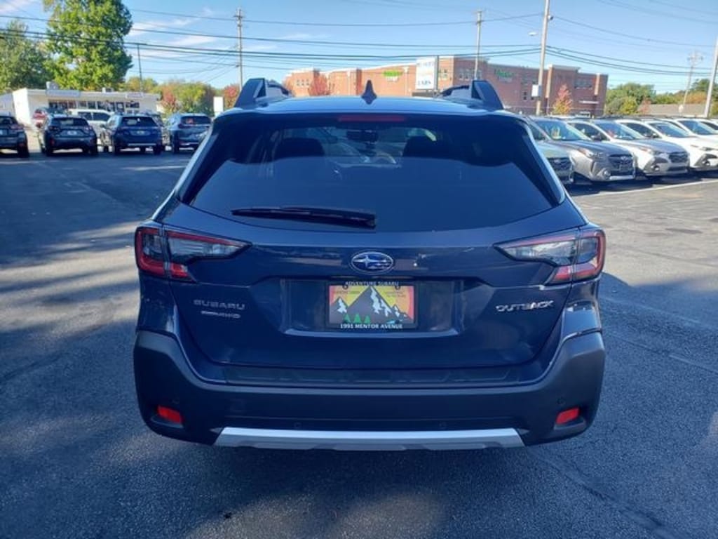 For safety, Subaru's EyeSight Driver Assist Technology is complemented by features like DriverFocus (driver monitoring system), blind-spot detection, rear cross-traffic alert, and reverse automatic braking. With Symmetrical All-Wheel Drive, roof rails, and a power rear gate, this Outback is designed for convenience and confidence in all conditions.