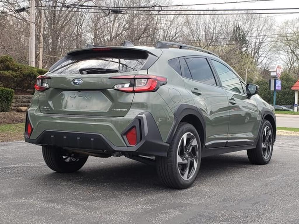 Inside, the Crosstrek Limited is equipped well above what most shoppers expect at this price. The 11.6-inch Multimedia Plus system with navigation is part of the Option Package 33 upgrade on this specific unit, along with a Harman Kardon speaker system a meaningful step up from the standard audio. The touchscreen runs wireless Apple CarPlay and Android Auto, and a wireless phone charger keeps the console uncluttered. Leather-trimmed upholstery, a 10-way power driver's seat with two-way lumbar support, heated front seats, heated mirrors, and heated wipers round out the comfort equipment the heated wipers in particular earn their keep when Lake Erie weather moves in fast. Dual-zone automatic climate control with dynamic ventilation manages temperature without negotiation between driver and passenger. The auto-dimming mirror with compass and HomeLink, all-weather floor liners, and rear bumper cover were added at original purchase and are included with this vehicle. Roof rails are standard on the Limited and ready for a rack if your weekends call for one. The exterior color is Alpine Green a premium finish that photographs well and wears the Crosstrek's profile cleanly.