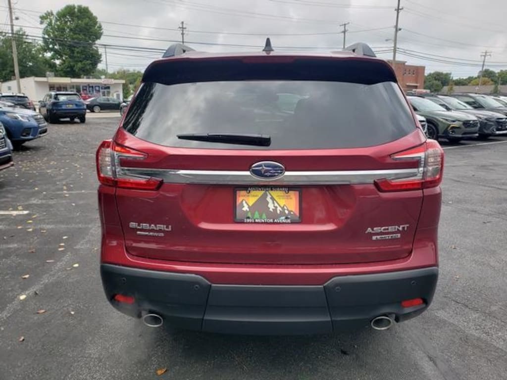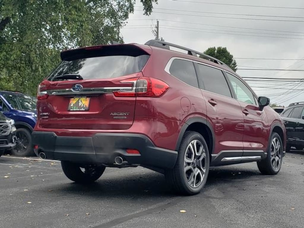 Adventure Subaru is proud to offer this fantastic 2025 Subaru Ascent in Crimson Red Pearl. This vehicle has been thoroughly inspected, ready to take home, and comes with the following features; Standard Model, 14 Speakers, 3rd row seats: bench, 3rd Row Sunshade, 4-Wheel Disc Brakes, ABS brakes, Air Conditioning, All-Weather Floor Liners, Alloy wheels, AM/FM radio: SiriusXM with 360L, Apple CarPlay & Android Auto, Auto High-beam Headlights, Auto-Dimming Exterior Mirror w/Approach Light, Auto-dimming Rear-View mirror, Automatic temperature control, Brake assist, Bumpers: body-color, Cargo Tray, Compass, Delay-off headlights, Driver door bin, Driver vanity mirror, Dual front impact airbags, Dual front side impact airbags, Electronic Stability Control, Emergency communication system: MySubaru Safety (3-year free trial), Exterior Parking Camera Rear, Four wheel independent suspension, Front anti-roll bar, Front Bucket Seats, Front Center Armrest, Front dual zone A/C, Front fog lights, Front reading lights, Fully automatic headlights, Garage door transmitter: HomeLink, harman/kardon® Speakers, Heated door mirrors, Heated Front Bucket Seats, Heated front seats, Heated rear seats, Heated steering wheel, Illuminated entry, Knee airbag, Leather Shift Knob, Leather steering wheel, LED Cargo Area Lighting, Low tire pressure warning, Memory seat, Navigation System, Occupant sensing airbag, Outside temperature display, Overhead airbag, Overhead console, Panic alarm, Passenger door bin, Passenger vanity mirror, Perforated Leather-Trimmed Upholstery, Power door mirrors, Power driver seat, Power Liftgate, Power moonroof, Power passenger seat, Power steering, Power windows, Radio data system, Radio: Subaru 11.6" Multimedia System w/Navigation, Rear air conditioning, Rear anti-roll bar, Rear reading lights, Rear window defroster, Rear window wiper, Reclining 3rd row seat, Remote keyless entry, Security system, Speed control, Speed-sensing steering, Split folding rear seat, Spoiler, Steering wheel mounted audio controls, Tachometer, Telescoping steering wheel, Tilt steering wheel, Traction control, Trip computer, Turn signal indicator mirrors, Variably intermittent wipers, and Wheels: 20" x 7.5 J Dk Gray Alloy w/Machine Finish.