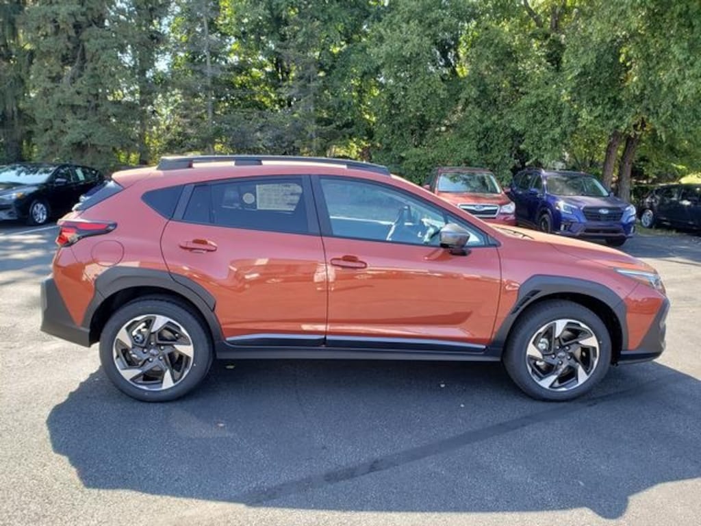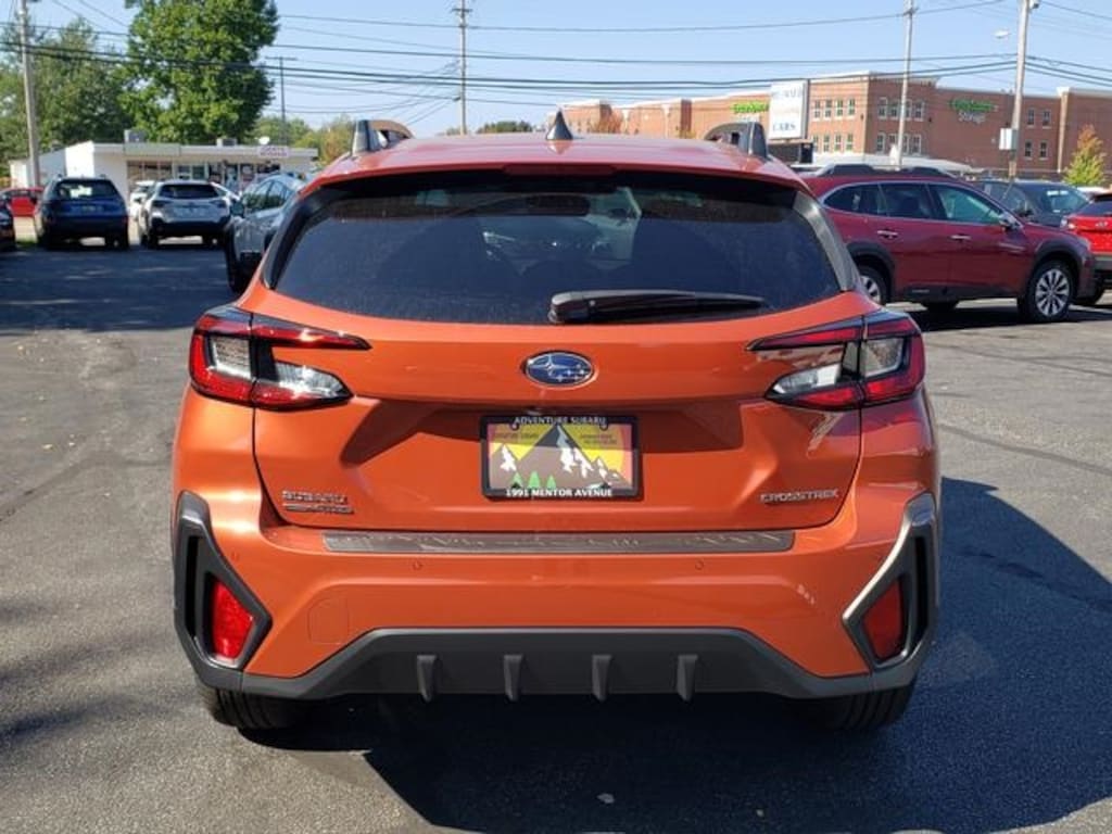 Adventure Subaru is proud to offer this outstanding-looking 2025 Subaru Crosstrek in Sun Blaze Pearl. This vehicle has been thoroughly inspected, ready to take home, and comes with the following features; harman/kardon Audio & Power Moonroof (harman/kardon Surround Sound Speaker System and Power Moonroof), 4-Wheel Disc Brakes, 6 Speakers, ABS brakes, Air Conditioning, All-Weather Floor Liners, Alloy wheels, AM/FM radio: SiriusXM, Anti-whiplash front head restraints, Auto High-beam Headlights, Auto-Dimming Mirror w/Compass & HomeLink, Automatic temperature control, Brake assist, Bumpers: body-color, Driver door bin, Driver vanity mirror, Dual front impact airbags, Dual front side impact airbags, Electronic Stability Control, Emergency communication system, Exterior Parking Camera Rear, Four wheel independent suspension, Front anti-roll bar, Front Bucket Seats, Front Center Armrest, Front dual zone A/C, Front fog lights, Front reading lights, Fully automatic headlights, Heated door mirrors, Heated Front Bucket Seats, Heated front seats, Illuminated entry, Knee airbag, Leather Shift Knob, Leather steering wheel, Leather-Trimmed Upholstery, LED Upgrade, Low tire pressure warning, Occupant sensing airbag, Outside temperature display, Overhead airbag, Overhead console, Panic alarm, Passenger door bin, Passenger vanity mirror, Power door mirrors, Power driver seat, Power steering, Power windows, Radio data system, Radio: Subaru 11.6" Multimedia Plus System, Rear anti-roll bar, Rear Bumper Cover, Rear seat center armrest, Rear window defroster, Rear window wiper, Remote keyless entry, Security system, Speed control, Speed-sensing steering, Split folding rear seat, Spoiler, Steering wheel mounted audio controls, Tachometer, Telescoping steering wheel, Tilt steering wheel, Traction control, Trip computer, Turn signal indicator mirrors, Variably intermittent wipers, and Wheels: 18" x 7.0" J Machine Finish Aluminum-Alloy.