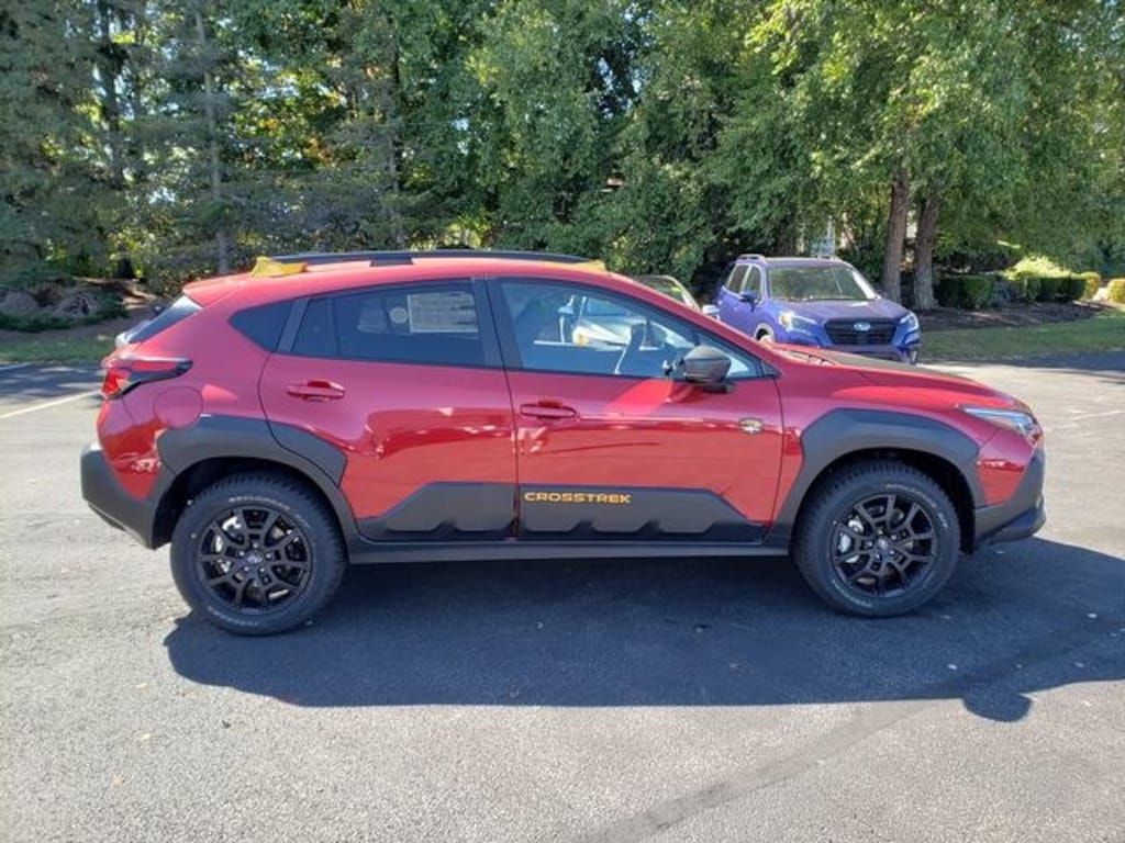 Adventure Subaru is proud to offer this good-looking 2025 Subaru Crosstrek in Red. This vehicle has been thoroughly inspected, ready to take home, and comes with the following features; H/K Speaker System & Pwr Moonroof & Pwr Driver St (10-Way Power Driver's Seat, harman/kardon Surround Sound Speaker System, and Power Moonroof), 4-Wheel Disc Brakes, 6 Speakers, ABS brakes, Air Conditioning, Alloy wheels, AM/FM radio: SiriusXM, Anti-whiplash front head restraints, Auto High-beam Headlights, Auto-Dimming Mirror w/Compass & HomeLink, Automatic temperature control, Brake assist, Bumpers: body-color, Driver door bin, Driver vanity mirror, Dual front impact airbags, Dual front side impact airbags, Electronic Stability Control, Emergency communication system, Exterior Parking Camera Rear, Four wheel independent suspension, Front anti-roll bar, Front Bucket Seats, Front Center Armrest, Front dual zone A/C, Front fog lights, Front reading lights, Fully automatic headlights, Heated door mirrors, Heated Front Bucket Seats, Heated front seats, Illuminated entry, Knee airbag, Leather Shift Knob, Leather steering wheel, LED Upgrade, Low tire pressure warning, Occupant sensing airbag, Outside temperature display, Overhead airbag, Overhead console, Panic alarm, Passenger door bin, Passenger vanity mirror, Power door mirrors, Power steering, Power windows, Radio data system, Radio: Subaru 11.6" Multimedia Plus System, Rear anti-roll bar, Rear Bumper Cover - Wilderness, Rear seat center armrest, Rear Seatback Protector, Rear window defroster, Rear window wiper, Remote keyless entry, Security system, Speed control, Speed-sensing steering, Split folding rear seat, Spoiler, Steering wheel mounted audio controls, Tachometer, Telescoping steering wheel, Tilt steering wheel, Traction control, Trailer Hitch, Trip computer, Turn signal indicator mirrors, Variably intermittent wipers, Wheels: 17" x 7.0" J Matte Black Aluminum-Alloy, and Wilderness StarTex Upholstery.