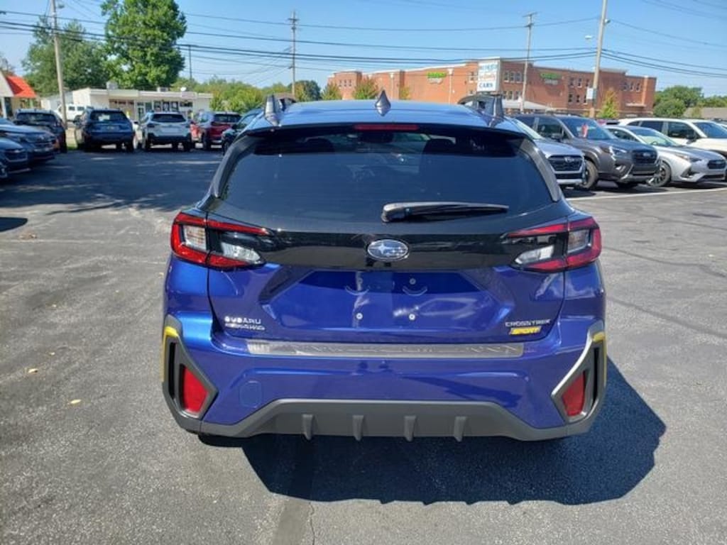 Equipped with Subaru's Symmetrical All-Wheel Drive, advanced stability control, and a rear vision camera, the Crosstrek ensures confidence no matter the conditions. Safety features include dual front and side-impact airbags, emergency communication via STARLINK Safety & Security (subscription required), and bright LED headlights for excellent visibility.