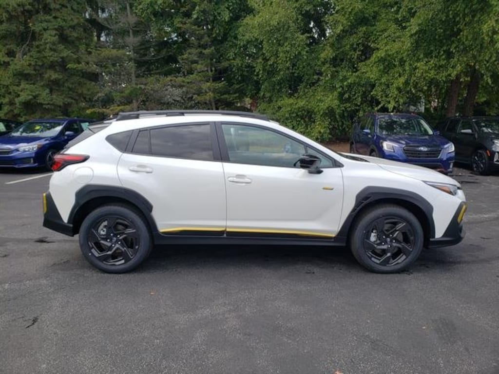 Adventure Subaru is proud to offer this beautiful 2025 Subaru Crosstrek in Crystal White Pearl. This vehicle has been thoroughly inspected, ready to take home, and comes with the following features; BSD/RCTA & Power Driver Seat & Power Moonroof (10-Way Power Driver's Seat, Blind Spot Detection (BSD), Power Moonroof, and Rear Cross-Traffic Alert (RCTA) System), 4-Wheel Disc Brakes, 6 Speakers, ABS brakes, Air Conditioning, All-Weather Floor Liners, Alloy wheels, AM/FM radio: SiriusXM, Anti-whiplash front head restraints, Auto High-beam Headlights, Auto-Dimming Mirror w/Compass & HomeLink, Automatic temperature control, Brake assist, Bumpers: body-color, Driver door bin, Driver vanity mirror, Dual front impact airbags, Dual front side impact airbags, Electronic Stability Control, Emergency communication system, Exterior Parking Camera Rear, Four wheel independent suspension, Front anti-roll bar, Front Bucket Seats, Front Center Armrest, Front dual zone A/C, Front fog lights, Front reading lights, Fully automatic headlights, Heated door mirrors, Heated Front Bucket Seats, Heated front seats, Illuminated entry, Knee airbag, Leather Shift Knob, Leather steering wheel, Low tire pressure warning, Occupant sensing airbag, Outside temperature display, Overhead airbag, Overhead console, Panic alarm, Passenger door bin, Passenger vanity mirror, Power door mirrors, Power steering, Power windows, Radio data system, Radio: Subaru 11.6" Multimedia Plus System, Rear anti-roll bar, Rear Bumper Cover, Rear seat center armrest, Rear window defroster, Rear window wiper, Remote keyless entry, Security system, Speed control, Speed-sensing steering, Split folding rear seat, Spoiler, Sport Cloth Upholstery, Steering wheel mounted audio controls, Tachometer, Telescoping steering wheel, Tilt steering wheel, Traction control, Trip computer, Turn signal indicator mirrors, Variably intermittent wipers, and Wheels: 18" x 7.0" J Dark Gray Aluminum-Alloy.
