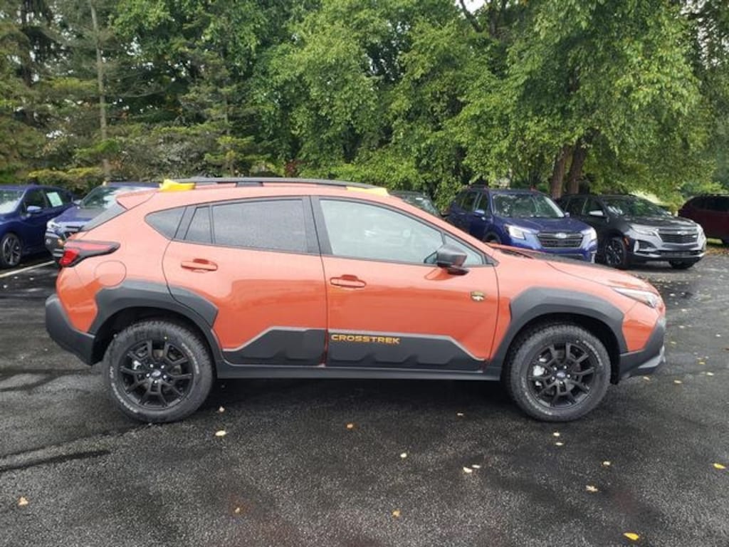 Adventure Subaru is proud to offer this charming 2025 Subaru Crosstrek in Sun Blaze Pearl. This vehicle has been thoroughly inspected, ready to take home, and comes with the following features; H/K Speaker System & Pwr Moonroof & Pwr Driver St (10-Way Power Driver's Seat, harman/kardon Surround Sound Speaker System, and Power Moonroof), 4-Wheel Disc Brakes, 6 Speakers, ABS brakes, Air Conditioning, Alloy wheels, AM/FM radio: SiriusXM, Anti-whiplash front head restraints, Auto High-beam Headlights, Auto-Dimming Mirror w/Compass & HomeLink, Automatic temperature control, Brake assist, Bumpers: body-color, Driver door bin, Driver vanity mirror, Dual front impact airbags, Dual front side impact airbags, Electronic Stability Control, Emergency communication system, Exterior Parking Camera Rear, Four wheel independent suspension, Front anti-roll bar, Front Bucket Seats, Front Center Armrest, Front dual zone A/C, Front fog lights, Front reading lights, Fully automatic headlights, Heated door mirrors, Heated Front Bucket Seats, Heated front seats, Illuminated entry, Knee airbag, Leather Shift Knob, Leather steering wheel, LED Upgrade, Low tire pressure warning, Occupant sensing airbag, Outside temperature display, Overhead airbag, Overhead console, Panic alarm, Passenger door bin, Passenger vanity mirror, Power door mirrors, Power steering, Power windows, Radio data system, Radio: Subaru 11.6" Multimedia Plus System, Rear anti-roll bar, Rear Bumper Cover - Wilderness, Rear seat center armrest, Rear Seatback Protector, Rear window defroster, Rear window wiper, Remote keyless entry, Security system, Speed control, Speed-sensing steering, Split folding rear seat, Spoiler, Steering wheel mounted audio controls, Tachometer, Telescoping steering wheel, Tilt steering wheel, Traction control, Trailer Hitch, Trip computer, Turn signal indicator mirrors, Variably intermittent wipers, Wheels: 17" x 7.0" J Matte Black Aluminum-Alloy, and Wilderness StarTex Upholstery.