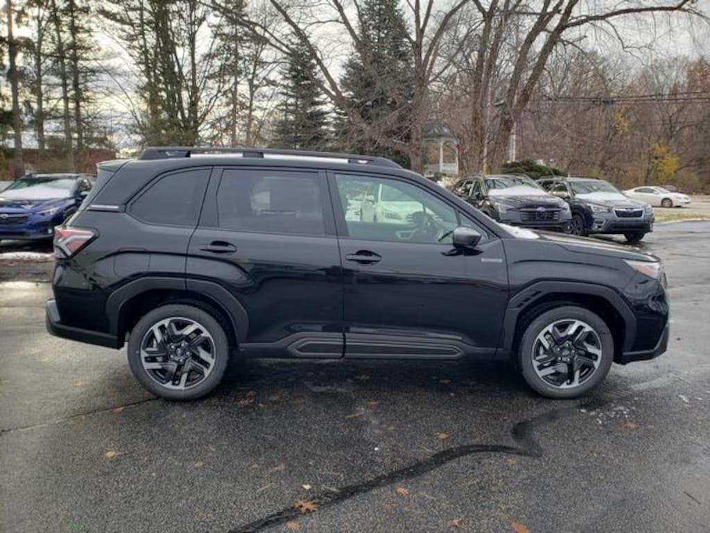 Adventure Subaru is proud to offer this wonderful 2025 Subaru Forester Hybrid in Crystal Black Silica. This vehicle has been thoroughly inspected, ready to take home, and comes with the following features; Standard Model, 2.5L 4-Cylinder DOHC 16V, 11 Speakers, 4-Wheel Disc Brakes, ABS brakes, Air Conditioning, All-Weather Floor Liners, Alloy wheels, AM/FM radio: SiriusXM with 360L, Anti-whiplash front head restraints, Auto High-beam Headlights, Auto-Dimming Mirror with Compass and HomeLink, Automatic temperature control, Brake assist, Bumpers: body-color, Cargo Tray, Compass, Driver door bin, Driver vanity mirror, Dual front impact airbags, Dual front side impact airbags, Electronic Stability Control, Emergency communication system: MySubaru Safety (3-year free trial), Exterior Parking Camera Rear, Four wheel independent suspension, Front anti-roll bar, Front Bucket Seats, Front Center Armrest, Front dual zone A/C, Front fog lights, Front reading lights, Fully automatic headlights, harman/kardon® Speakers, Heated door mirrors, Heated Front Bucket Seats, Heated front seats, Illuminated entry, Knee airbag, LED Upgrade, Low tire pressure warning, Navigation system: TomTom Navigation w/what3words, Occupant sensing airbag, Outside temperature display, Overhead airbag, Overhead console, Panic alarm, Passenger door bin, Passenger vanity mirror, Power door mirrors, Power driver seat, Power Liftgate, Power moonroof: Panoramic, Power passenger seat, Power steering, Power windows, Radio data system, Radio: Subaru 11.6" Multimedia Navigation System, Rear anti-roll bar, Rear Bumper Cover, Rear seat center armrest, Rear window defroster, Rear window wiper, Remote keyless entry, Security system, Speed control, Speed-sensing steering, Split folding rear seat, Spoiler, StarTex Upholstery, Steering wheel mounted audio controls, Tachometer, Telescoping steering wheel, Tilt steering wheel, Traction control, Trip computer, Turn signal indicator mirrors, Variably intermittent wipers, and Wheels: 18" x 7.0 J Dark Metallic Aluminum-Alloy. 2.5L 4-Cylinder DOHC 16V.