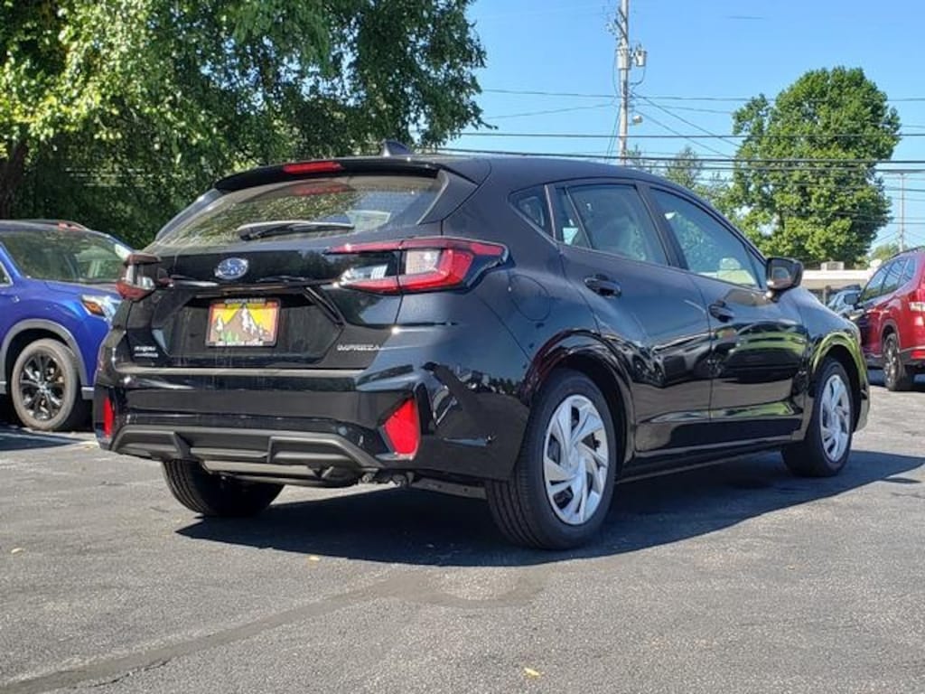 Adventure Subaru is proud to offer this terrific-looking 2025 Subaru Impreza in Crystal Black Silica. This vehicle has been thoroughly inspected, ready to take home, and comes with the following features; Standard Model, 4 Speakers, 4-Wheel Disc Brakes, ABS brakes, Air Conditioning, All-Weather Floor Liners, AM/FM radio: SiriusXM, Anti-whiplash front head restraints, Auto High-beam Headlights, Automatic temperature control, Brake assist, Bumpers: body-color, Cargo Cover, Cargo Tray, Cloth Upholstery, Driver door bin, Driver vanity mirror, Dual front impact airbags, Dual front side impact airbags, Electronic Stability Control, Exterior Parking Camera Rear, Four wheel independent suspension, Front anti-roll bar, Front Bucket Seats, Front Center Armrest, Front dual zone A/C, Front reading lights, Fully automatic headlights, Illuminated entry, Knee airbag, Low tire pressure warning, Occupant sensing airbag, Outside temperature display, Overhead airbag, Overhead console, Panic alarm, Passenger door bin, Passenger vanity mirror, Power door mirrors, Power steering, Power windows, Radio data system, Radio: Subaru Dual 7" Multimedia System, Rear Bumper Applique, Rear window defroster, Rear window wiper, Remote keyless entry, Security system, Speed control, Speed-sensing steering, Split folding rear seat, Spoiler, Steering wheel mounted audio controls, Tachometer, Telescoping steering wheel, Tilt steering wheel, Traction control, Trip computer, Variably intermittent wipers, and Wheels: 16" x 6.0" 1/2J Steel w/Full Cap.