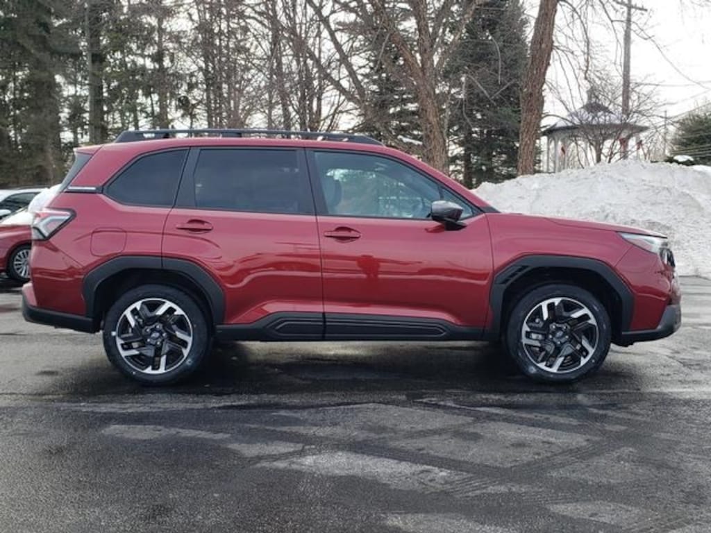 Adventure Subaru is proud to offer this great 2026 Subaru Forester in Crimson Red Pearl. This vehicle has been thoroughly inspected, ready to take home, and comes with the following features; Harman/Kardon Speaker System and Navigation and Reverse Automatic Braking (Radio: Subaru 11.6" Multimedia Navigation System and Reverse Automatic Braking (RAB) System), 4-Wheel Disc Brakes, 6 Speakers, ABS brakes, Air Conditioning, All-Weather Floor Liners, Alloy wheels, AM/FM radio: SiriusXM with 360L, Anti-whiplash front head restraints, Auto High-beam Headlights, Auto-Dimming Mirror with Compass and HomeLink, Automatic temperature control, Brake assist, Bumpers: body-color, Cargo Tray, Driver door bin, Driver vanity mirror, Dual front impact airbags, Dual front side impact airbags, Electronic Stability Control, Emergency communication system: MySubaru Companion (5-years free), Exterior Parking Camera Rear, Four wheel independent suspension, Front anti-roll bar, Front Bucket Seats, Front Center Armrest, Front dual zone A/C, Front fog lights, Front reading lights, Fully automatic headlights, Heated door mirrors, Heated Front Bucket Seats, Heated front seats, Heated steering wheel, Illuminated entry, Knee airbag, Leather steering wheel, LED Upgrade, Low tire pressure warning, Occupant sensing airbag, Outside temperature display, Overhead airbag, Overhead console, Panic alarm, Passenger door bin, Passenger vanity mirror, Perforated Leather-Trimmed Upholstery, Power door mirrors, Power driver seat, Power Liftgate, Power moonroof: Panoramic, Power passenger seat, Power steering, Power windows, Radio data system, Radio: Subaru 11.6" Multimedia Plus System, Rain sensing wipers, Rear anti-roll bar, Rear Bumper Cover, Rear seat center armrest, Rear window defroster, Rear window wiper, Remote keyless entry, Security system, Speed control, Speed-sensing steering, Split folding rear seat, Spoiler, Steering wheel mounted audio controls, Tachometer, Telescoping steering wheel, Tilt steering wheel, Traction control, Trip computer, Turn signal indicator mirrors, Variably intermittent wipers, and Wheels: 18" x 7.0 J Dark Metallic Aluminum-Alloy.