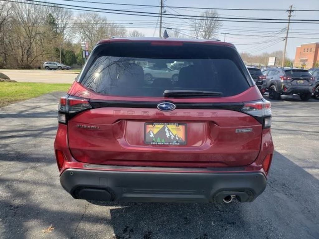 Adventure Subaru is proud to offer this charming 2026 Subaru Forester in Crimson Red Pearl. This vehicle has been thoroughly inspected, ready to take home, and comes with the following features; Standard Model, 11 Speakers, 4-Wheel Disc Brakes, ABS brakes, Air Conditioning, All-Weather Floor Liners, Alloy wheels, AM/FM radio: SiriusXM with 360L, Anti-whiplash front head restraints, Auto High-beam Headlights, Auto-Dimming Exterior Mirror with Approach Light, Automatic temperature control, Brake assist, Bumpers: body-color, Cargo Tray, Compass, Door Projector Lights, Driver door bin, Driver vanity mirror, Dual front impact airbags, Dual front side impact airbags, Electronic Stability Control, Emergency communication system: MySubaru Companion (5-years free), Exterior Parking Camera Rear, Four wheel independent suspension, Front anti-roll bar, Front Bucket Seats, Front Center Armrest, Front dual zone A/C, Front fog lights, Front reading lights, Fully automatic headlights, harman/kardon® Speakers, Heated and Ventilated Front Bucket Seats, Heated door mirrors, Heated front seats, Heated rear seats, Heated steering wheel, HVAC memory, Illuminated entry, Knee airbag, Low tire pressure warning, Memory seat, Navigation System, Occupant sensing airbag, Outside temperature display, Overhead airbag, Overhead console, Panic alarm, Passenger door bin, Passenger vanity mirror, Perforated Leather-Trimmed Upholstery, Power door mirrors, Power driver seat, Power Liftgate, Power moonroof: Panoramic, Power passenger seat, Power steering, Power windows, Radio data system, Radio: Subaru 11.6" Multimedia Navigation System, Rear anti-roll bar, Rear Bumper Cover, Rear seat center armrest, Rear Seatback Protector, Rear window defroster, Rear window wiper, Remote keyless entry, Security system, Side Sill Plates - Illuminated, Speed control, Speed-sensing steering, Split folding rear seat, Spoiler, Steering wheel mounted audio controls, Tachometer, Telescoping steering wheel, Tilt steering wheel, Traction control, Trip computer, Turn signal indicator mirrors, Variably intermittent wipers, Ventilated front seats, and Wheels: 19" x 7.5 J Dark Gray Aluminum-Alloy.