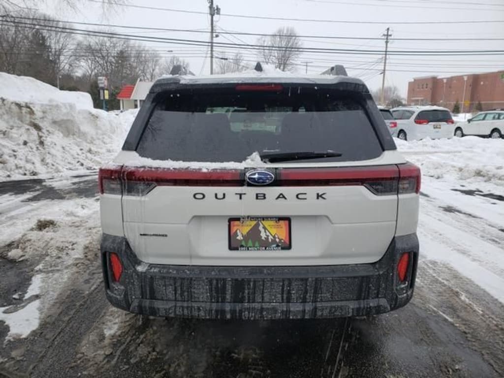Adventure Subaru is proud to offer this fantastic 2026 Subaru Outback in Crystal White Pearl. This vehicle has been thoroughly inspected, ready to take home, and comes with the following features; Standard Model, 12 Speakers, 4-Wheel Disc Brakes, ABS brakes, Air Conditioning, All-Weather Floor Liners, Alloy wheels, AM/FM radio: SiriusXM with 360L, Anti-whiplash front head restraints, Auto High-beam Headlights, Auto-Dimming Mirror with Compass and HomeLink, Automatic temperature control, Blind Spot Warning, Brake assist, Bumpers: body-color, Compass, Driver door bin, Driver vanity mirror, Dual front impact airbags, Dual front side impact airbags, Electronic Stability Control, Emergency communication system: MySubaru Companion (5-years free), Exterior Parking Camera Rear, Four wheel independent suspension, Front anti-roll bar, Front Bucket Seats, Front Center Armrest w/Storage, Front dual zone A/C, Front fog lights, Front reading lights, Fully automatic headlights, harman/kardon® Speakers, Heated door mirrors, Heated Front Bucket Seats, Heated front seats, Heated rear seats, Heated steering wheel, HVAC memory, Illuminated entry, Knee airbag, Leather steering wheel, LED Upgrade, Low tire pressure warning, Memory seat, Navigation system: MySubaru Navigator (1-year trial), Occupant sensing airbag, Outside temperature display, Overhead airbag, Overhead console, Panic alarm, Passenger door bin, Passenger vanity mirror, Perforated Leather-Trimmed Upholstery, Power door mirrors, Power driver seat, Power Liftgate, Power moonroof, Power passenger seat, Power steering, Power windows, Radio: Subaru 12.1" Multimedia System with Navigation, Rain sensing wipers, Rear anti-roll bar, Rear Bumper Cover, Rear Gate Light, Rear seat center armrest, Rear window defroster, Rear window wiper, Remote keyless entry, Security system, Speed control, Speed-sensing steering, Split folding rear seat, Spoiler, Steering wheel mounted audio controls, Tachometer, Telescoping steering wheel, Tilt steering wheel, Traction control, Trip computer, Turn signal indicator mirrors, Variably intermittent wipers, and Wheels: 19" x 7J Black Finish Aluminum-Alloy.
