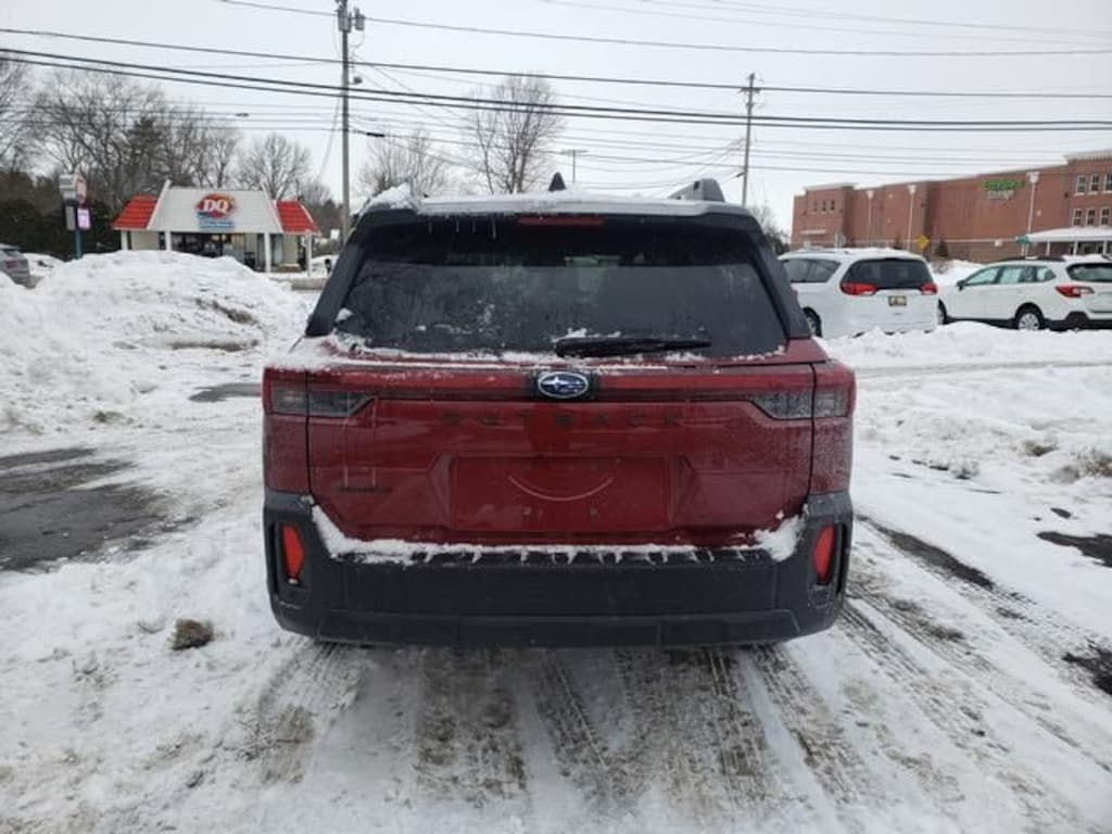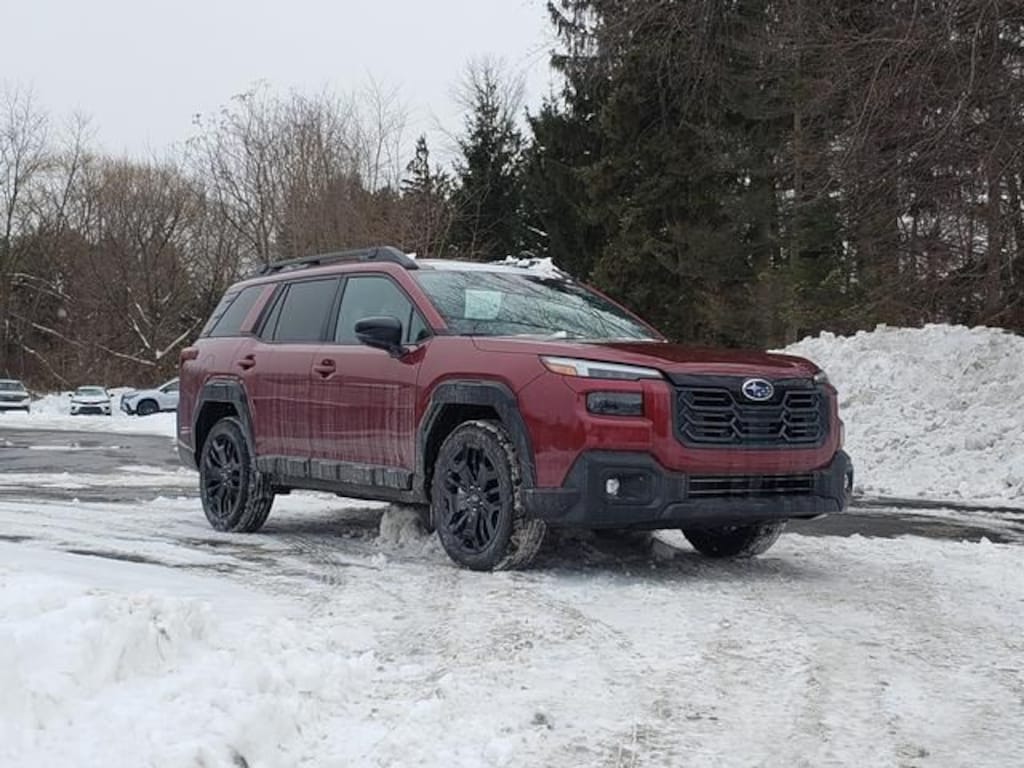 Adventure Subaru is proud to offer this handsome-looking 2026 Subaru Outback in Crimson Red Pearl. This vehicle has been thoroughly inspected, ready to take home, and comes with the following features; Standard Model, 12 Speakers, 4-Wheel Disc Brakes, ABS brakes, Air Conditioning, All-Weather Floor Liners, Alloy wheels, AM/FM radio: SiriusXM with 360L, Anti-whiplash front head restraints, Auto High-beam Headlights, Auto-Dimming Mirror with Compass and HomeLink, Automatic temperature control, Blind Spot Warning, Brake assist, Bumpers: body-color, Compass, Driver door bin, Driver vanity mirror, Dual front impact airbags, Dual front side impact airbags, Electronic Stability Control, Emergency communication system: MySubaru Companion (5-years free), Exterior Parking Camera Rear, Four wheel independent suspension, Front anti-roll bar, Front Bucket Seats, Front Center Armrest w/Storage, Front dual zone A/C, Front fog lights, Front reading lights, Fully automatic headlights, harman/kardon® Speakers, Heated door mirrors, Heated Front Bucket Seats, Heated front seats, Heated rear seats, Heated steering wheel, HVAC memory, Illuminated entry, Knee airbag, Leather steering wheel, LED Upgrade, Low tire pressure warning, Memory seat, Navigation system: MySubaru Navigator (1-year trial), Occupant sensing airbag, Outside temperature display, Overhead airbag, Overhead console, Panic alarm, Passenger door bin, Passenger vanity mirror, Perforated Leather-Trimmed Upholstery, Power door mirrors, Power driver seat, Power Liftgate, Power moonroof, Power passenger seat, Power steering, Power windows, Radio: Subaru 12.1" Multimedia System with Navigation, Rain sensing wipers, Rear anti-roll bar, Rear Bumper Cover, Rear Gate Light, Rear seat center armrest, Rear window defroster, Rear window wiper, Remote keyless entry, Security system, Speed control, Speed-sensing steering, Split folding rear seat, Spoiler, Steering wheel mounted audio controls, Tachometer, Telescoping steering wheel, Tilt steering wheel, Traction control, Trip computer, Turn signal indicator mirrors, Variably intermittent wipers, and Wheels: 19" x 7J Black Finish Aluminum-Alloy.