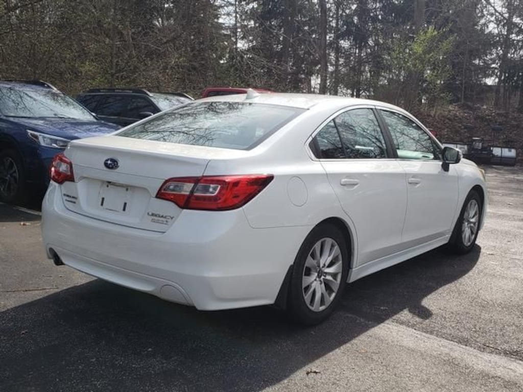 Northeast Ohio roads earn their reputation come November, and the Legacy earns its place on them. Symmetrical All-Wheel Drive is standard across the Legacy lineup, and this car pairs it with EyeSight Driver-Assist Technology Subaru's suite of adaptive cruise control, pre-collision automatic braking, lane keep assist, lane departure warning, and lane sway warning. It's the kind of safety technology that pulls its weight on Route 2 in January, and it's all factory-equipped on this 2.5i Premium. Blind Spot Detection with Lane Change Assist and Rear Cross Traffic Alert round out the driver assistance suite. The STARLINK 7.0 Multimedia Navigation System includes a multi-touch display with built-in navigation, SiriusXM Traffic and TravelLink, and Apple CarPlay compatibility. The power moonroof opens up the cabin on the kind of clear fall days that make driving through Lake County worth the trip. HomeLink and the auto-dimming compass mirror with HomeLink are included. Heated front seats take the edge off cold mornings, and all-weather floor mats and splash guards reflect how the original owner actually used this car. Crystal White Pearl over black is a clean, straightforward combination that holds up well in the used market.